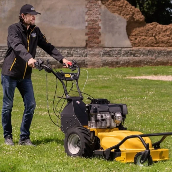 Der RECOTO GATOR Vierrad-Rasenmäher von Roques et Lecoeur ist ein Rad-Freischneider , der für die effiziente Pflege großer Rasenflächen entwickelt wurde. Ausgestattet mit einem 390-cm³-Honda-GXV390-Motor mit einer Nettoleistung von 7,6 kW bei 3.600 U/min bietet er eine hohe Leistung, die sich ideal für hohes und dichtes Gras eignet.