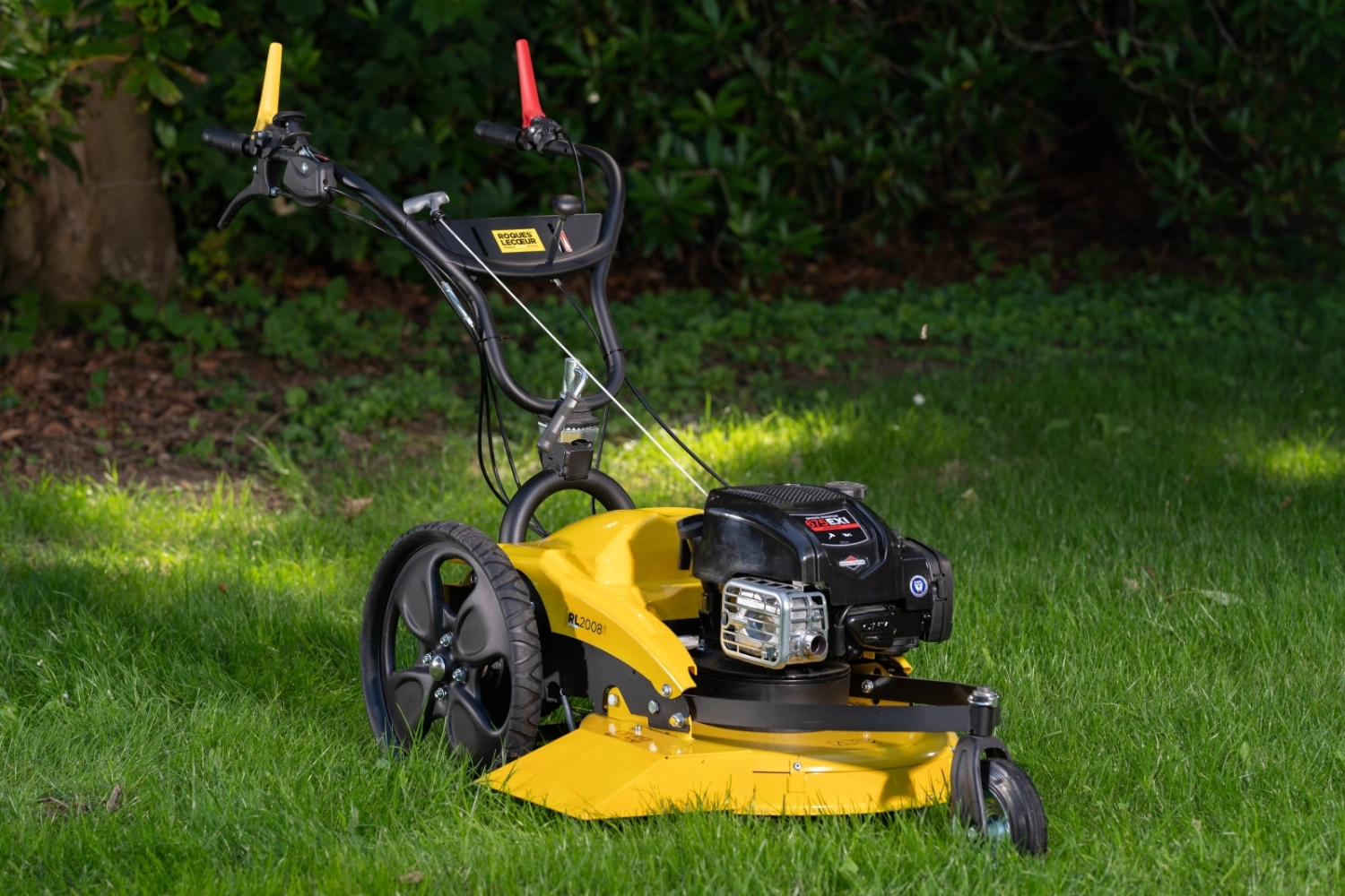 Um Ihr mit hohem Gras und Gestrüpp überwuchertes Land zu roden, wählen Sie den dreirädrigen Schlegelmäher Roques et Lecoeur RL2008 B. Seine vier Schnitthöhen sind zentral am Lenker angeordnet und können während des Betriebs bei laufendem Motor eingestellt werden.